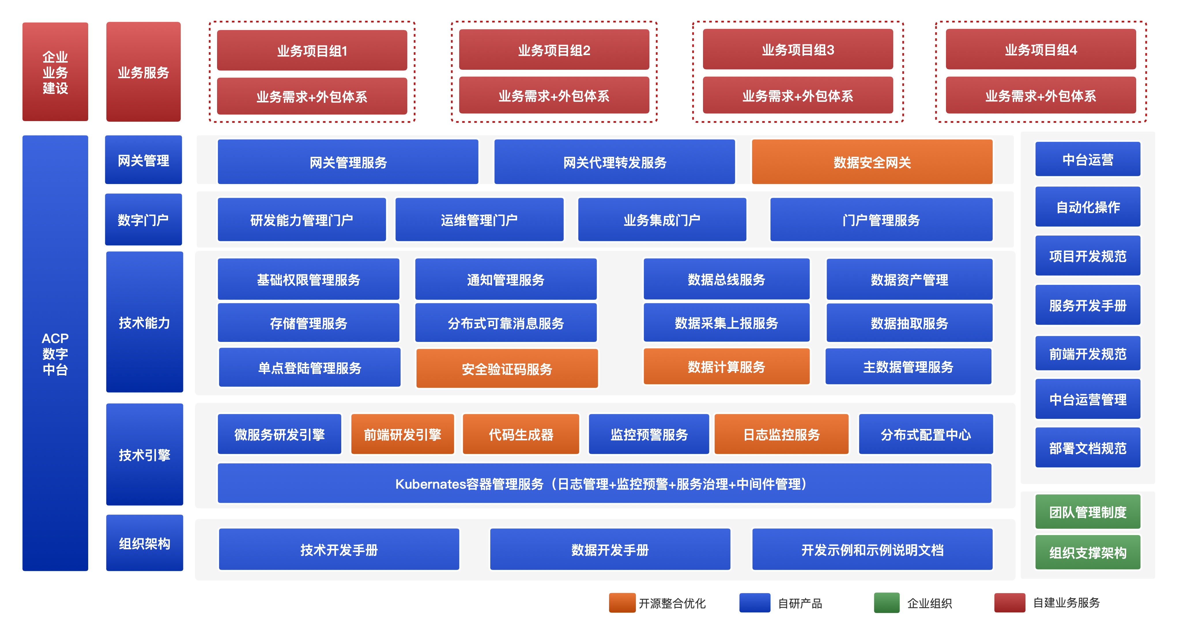 ACP數字中臺服務, 研發中臺產品體系架構規劃和設計,為完成整體的中臺產品進行的架構和產品的整體規劃。