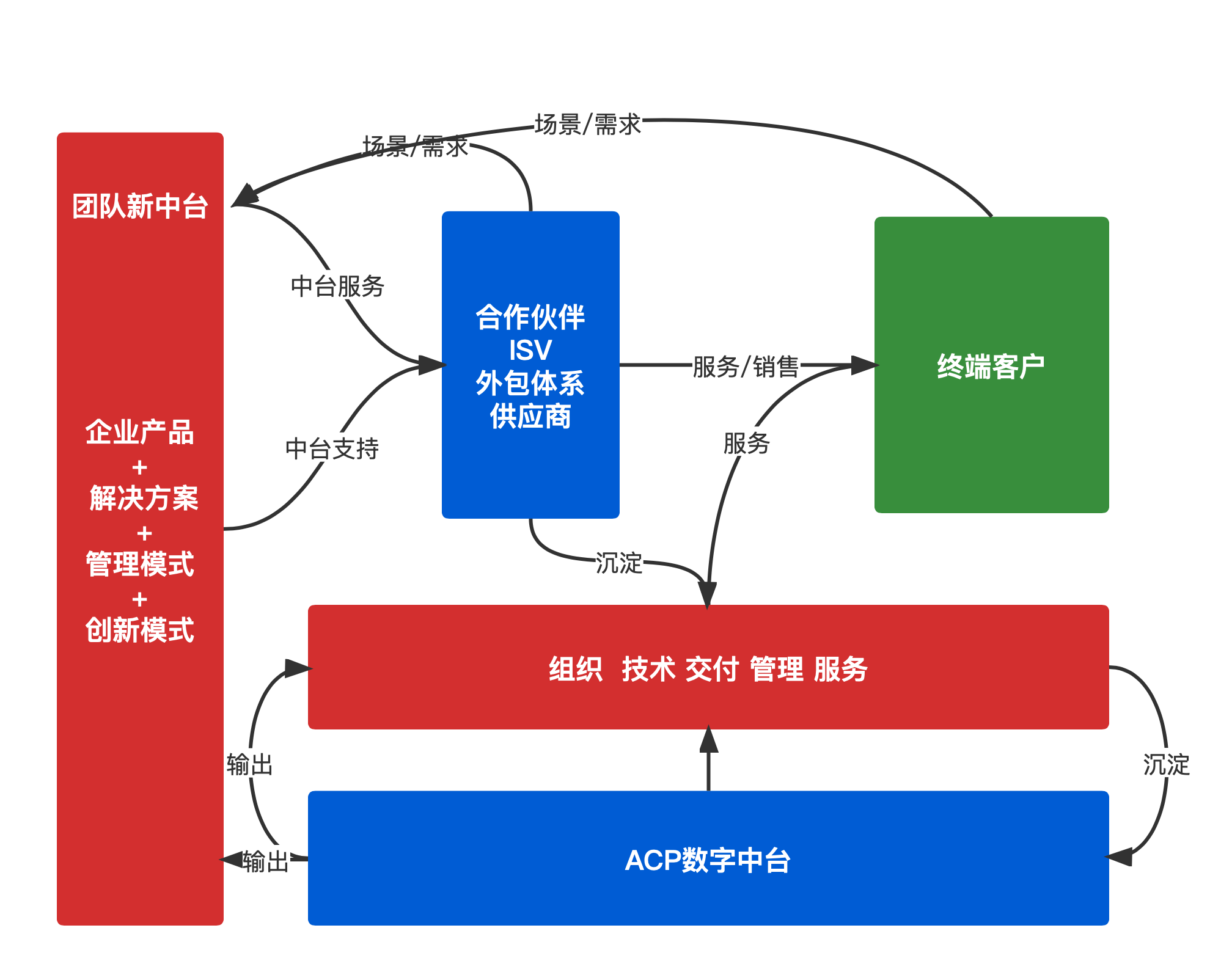 以客戶服務第一的原則,利用自身業務沉淀的優勢,整合出新的大中臺能力,然后集成各類 ISV 模式,提供更優質和創新的服務能力,更好的業務體驗和業務場景挖掘。